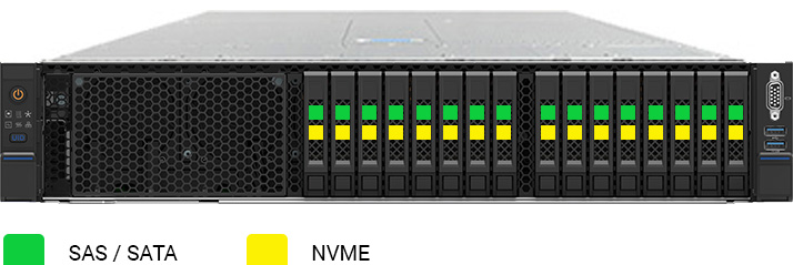 This system can be configured with NVMe drives, which are capable of significantly better performance than SATA and SAS.