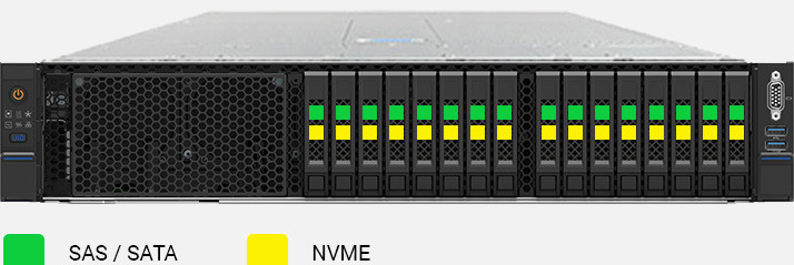 This system can be configured with SATA drives for cost-effective 12gb/s storage.