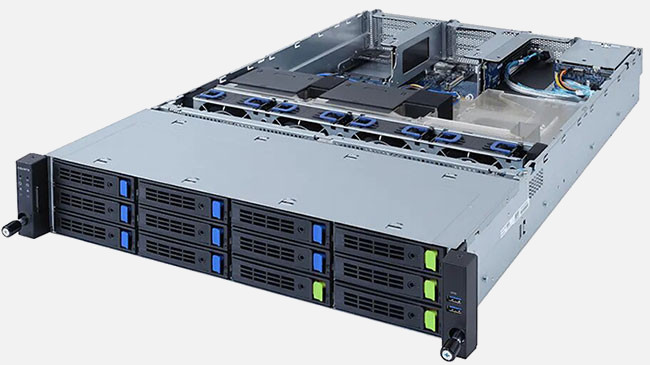 The Gigabyte R262-ZA2 (6NR262ZA2MR-00) can be configured with hot-swap drives, allowing you to remove and replace the drives whilst the system is running with no interruption.