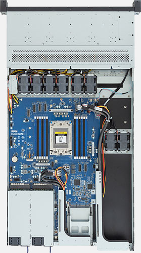 Single AMD EPYC 8004 Processor, Supports up to 1x double slot GPU cards, 1300W Redundant PSU, 8x 2.5" SATA/SAS & 4x 2.5" NVMe/SATA/SAS hot-swappable drive bays.
