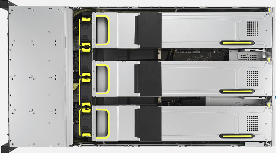 Dual AMD EPYC 9004 Series Processors, Supports up to 3x double slot GPU cards, Dual 2000W redundant power supply, 16x 2.5" NVMe & 8x 2.5" NVMe/SATA/SAS hot-swappable drive bays.