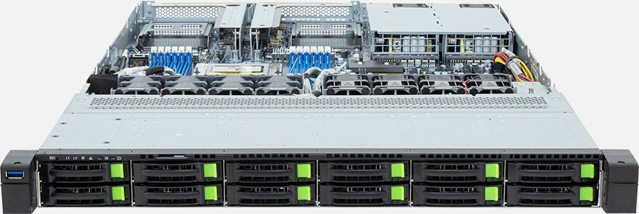 The CyberServe EPYC EP1 112-12NVMe-G G5 boasts high density storage and ultimate energy efficiency, catering for up to 12x High-Performance 2.5" SSD or Hard Drives