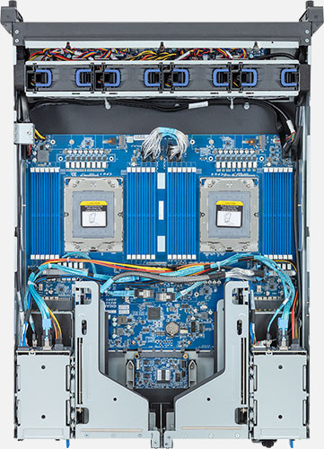 Dual AMD EPYC 9004 series processors, 6x FHHL PCIe Gen5 x16 and x8 slots, 2x 1Gb/s LAN ports (Intel® I350-AM2), 1600W Redundant Power Supply, 4x 2.5" NVMe/SATA/SAS hot-swappable drive bays.