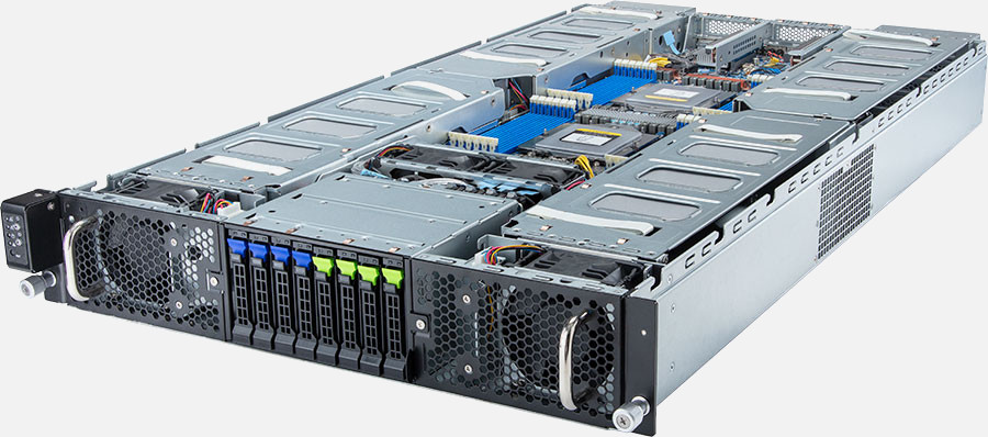 Dual AMD EPYC 9004 series processors, Supports up to 16x single slot GPU cards, 2x 10Gb/s BASE-T LAN ports (Broadcom® BCM57416), 4x 2.5" SATA/SAS & 4 x 2.5" NVMe/SATA/SAS hot-swappable drive bays.