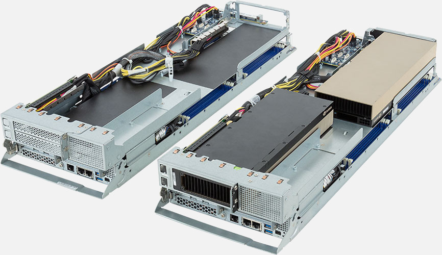 Dual Node, Dual AMD EPYC 9004 series processor(Per Node), Supports up to 4x Dual slot GPU cards, 4x 1Gb/s LAN ports (Intel® I350-AM2), 2600W Redundant Power Supply, 4x 2.5" NVMe hot-swappable drive bays.