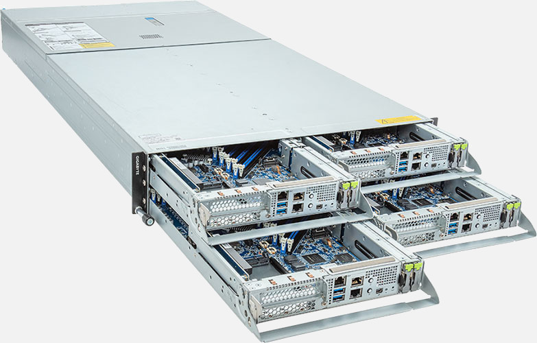 Quad Node, Single AMD EPYC 9004 series processor(Per Node), 4x LP PCIe Gen5 x16 slots, 8x 1Gb/s LAN ports (Intel® I350-AM2), 3000W Redundant Power Supply, 8x E1.S Gen4 NVMe hot-swappable bays