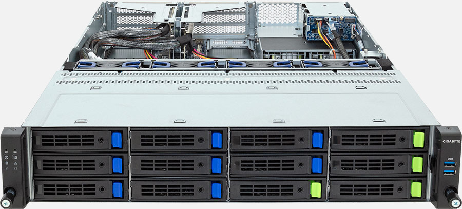 The Gigabyte R263-Z37 (6NR263Z37DR000AAH1) can be configured with hot-swap drives, allowing you to remove and replace the drives whilst the system is running with no interruption.