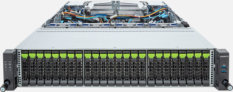 The Gigabyte R283-Z96 (6NR283Z96DR000AAJ1) can be configured with hot-swap drives, allowing you to remove and replace the drives whilst the system is running with no interruption.