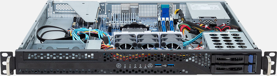This server supports SATA drives, which are very cost-effective and adept at dealing with mass storage.