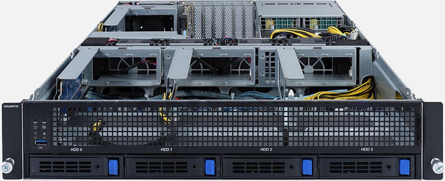 The Gigabyte G242-P34 (6NG242P34MR-00-1) can be configured with hot-swap drives, allowing you to remove and replace the drives whilst the system is running with no interruption.