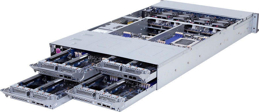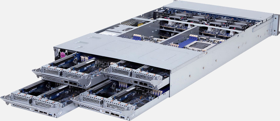 Quad Node, Dual Ampere® Altra series processors, 2x LP PCIe Gen4 x16 slots, 2x 1Gb/s LAN ports (Intel® I350-AM2), 2200W redundant power supply, 2x 2.5" SATA hot-swappable drive bays (Per Node).