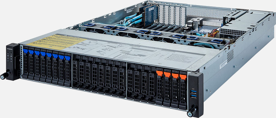 The Gigabyte R272-P32 (6NR272P32MR-00-1) can be configured with hot-swap drives, allowing you to remove and replace the drives whilst the system is running with no interruption.