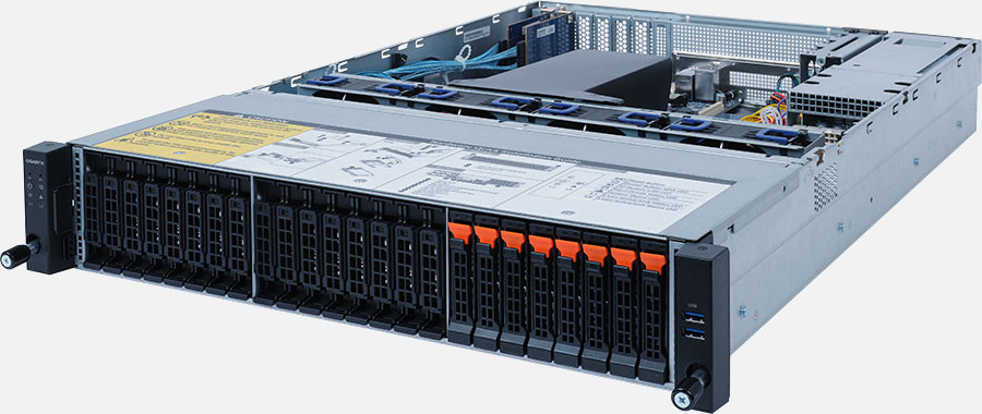 The Gigabyte R272-P33 (6NR272P33MR-00-1) can be configured with hot-swap drives, allowing you to remove and replace the drives whilst the system is running with no interruption.