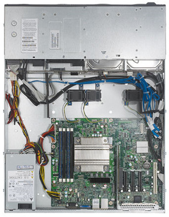 The price includes a 3.1GHz Xeon E3-1220: quad-core with an 8MB cache and Intel's Turbo Boost to step speed up to a maximum of 3.4GHz. Its low TDP of 80W made its mark in our power tests, with the review system drawing a mere 33W with Windows Server 2008 R2 64-bit idling along. With SiSoft Sandra putting all cores under extreme pressure this peaked at only 91W.