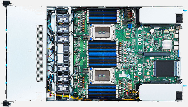 1U2S 32-DIMM Cloud Server, 4 NVMe U.2 + 4 SATA (LFF). 2 NVMe/SATA M.2 slots for boot drives. AST2500 BMC with Redfish support.