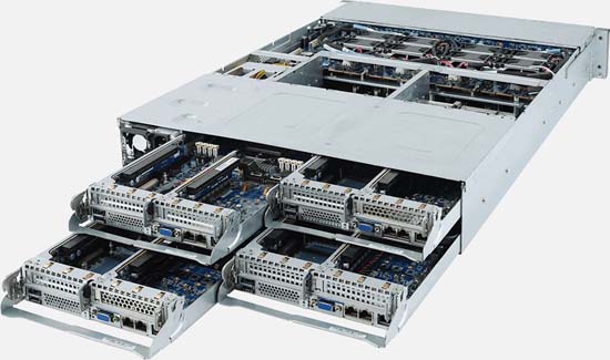 2U Quad Node, 24x 2.5" NVMe/SATA Hot-swappable SSD Drive Bays, 8x M.2 with PCIe Gen3 x4 interface, 8x Low profile PCIe x16 Expansion Slots, 8x 1Gb/s LAN ports (Intel® I350-AM2)
