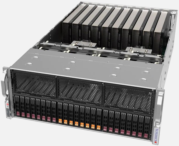 Optimised for High Performance Computing, AI and Deep Learning. AMD EPYC 9004 Series Processor. 2000W Redundant power supply. 24x 2.5" hot-swap NVMe/SATA/SAS drive bays