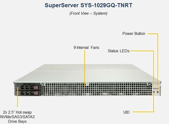 The Supermicro SuperServer 1029GQ-TNRT | SYS-1029GQ-TNRT supports the Intel Xeon Scalable Processors 2nd Generation family in a high-density 1U form-factor. These SuperServers are ideal for network infrastructure, front-end enterprise, and minimal-downtime cluster server systems.