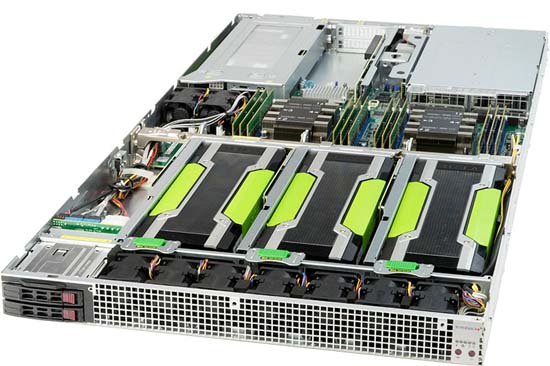 Up to 4x GPUs in 1U, Supports Active/Passive GPUs, 2x 10GBase-T LAN ports via Intel X540, 4 PCI-E 3.0 x16 (FHFL), 1 PCI-E 3.0 x16 (LP) and 1 PCI-E 3.0 x8 (LP)