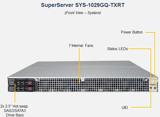 The Supermicro SuperServer 1029GQ-TXRT | SYS-1029GQ-TXRT can be configured with 2.5" drives, a more space efficient and low noise option. These drives also offer energy savings and increased flexibility.