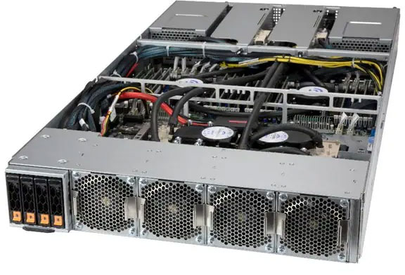 2U, Dual AMD EPYC 7003 series processor, 4x NVIDIA HGX A100 SXM4 GPUs, 2200W Redundant power supply, 4x 2.5" NVMe/SATA/SAS hot swap drive bays.