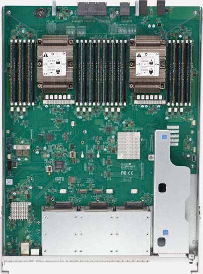 This system is capable of supporting up to 12 DIMMS per CPU. That’s a significant advancement on the previous limit, which was 9 DIMMS per CPU.