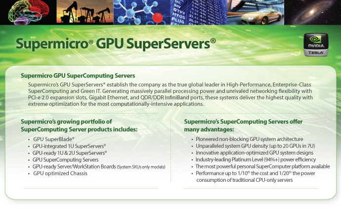 Supports up to 4x GPUs in 1U, 4x PCI-E 3.0 x16 (FHFL) slots, 2x PCI-E 3.0 x16 (LP) slots, 2x 10GBase-T LAN ports via Intel X540
