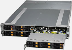The Supermicro GrandTwin A+ Server 2115GT-HNTF | AS-2115GT-HNTF features hot-swap hard drives, giving you more flexibility and allowing you to remove drives without having to shut down the system.