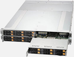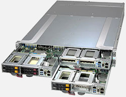 The Supermicro GrandTwin SuperServer 211GT-HNTF | SYS-211GT-HNTF can be configured with 2.5" drives, a more space efficient and low noise option. These drives also offer energy savings and increased flexibility.
