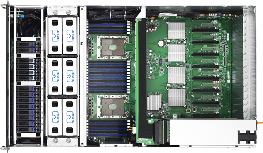 2U2S 32 DIMM HPC Server w/ PCIe 4.0 support. 8 NVMe U.2 + 18 2.5" SATA tool-lessdrive bays. Up to 9 PCIe Gen 4.0 x8 slots. AST2500 BMC with Redfish support.
