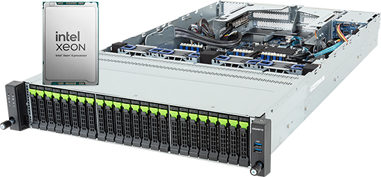Dual Intel Xeon 6 Series Processor, 2x FHHL PCIe Gen5 x16 slots, 1600W Redundant power supplies, 12x 2.5" NVMe/SATA/SAS hot swap drive bays.