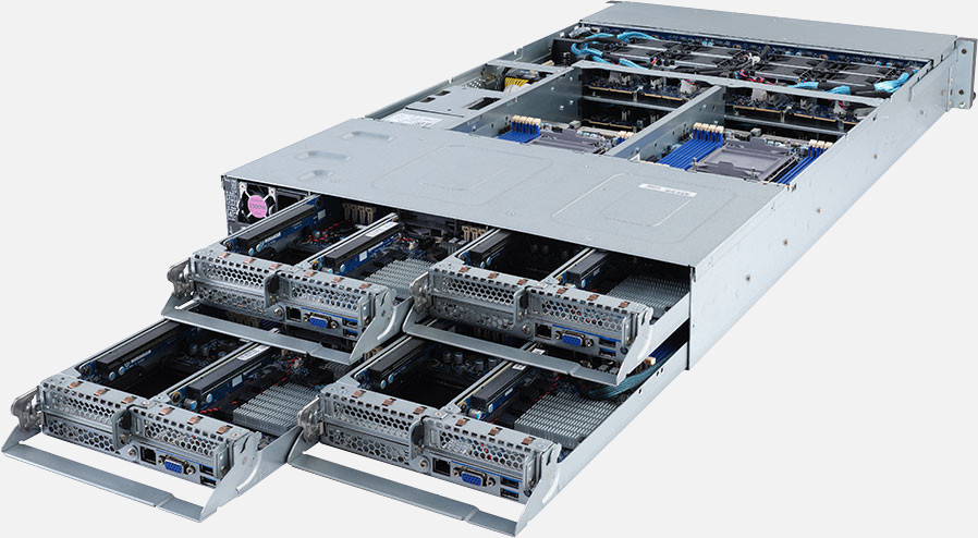 Quad Node, Dual 3rd Gen Intel® Xeon® Scalable Processors, 2U 4 Node System, 8x PCIe Gen4 expansion slots, 2200W redundant power supply, 8x 2.5" NVMe/SATA Hot swap drive bays (2x Per Node).