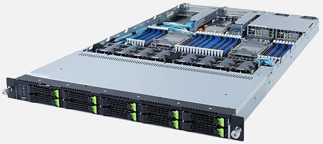 The Gigabyte R182-NA1 (6NR182NA1MR-00) can be configured with hot-swap drives, allowing you to remove and replace the drives whilst the system is running with no interruption.