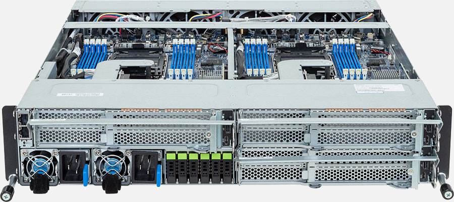 Triple Node, Single 4th Gen Intel Xeon Scalable Processors (Per Node), 6x FHHL PCIe Gen5 x16 slots, 3x LP PCIe Gen5 x16 slots, 3000W Redundant Power Suppply, 6x 9.5mm E1.S Gen4 NVMe hot-swappable drive bays.