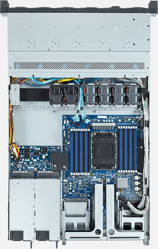 Single 4th Gen Intel Xeon Scalable Processors, 1x FHHL PCIe Gen5 x16 slot, 2x 1Gb/s LAN ports (Intel® I210-AT), 12x NVMe/SATA/SAS hot-swappable drive bays.
