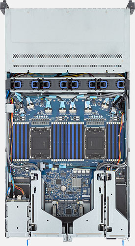 Dual 4th Gen Intel Xeon Scalable Processors, 6x FHHL PCIe Gen5 x16 slots & 2x LP PCIe Gen5 x8 slots, 2x 1Gb/s LAN ports (Intel® I350-AM2), Dual 2000W Redundant PSU, 4x 2.5" NVMe & 20x 2.5" SATA/SAS hot-swappable drive bays.