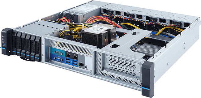 This server supports SATA drives, which are very cost-effective and adept at dealing with mass storage.