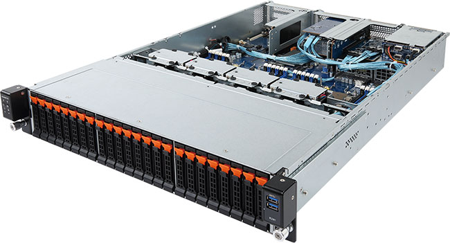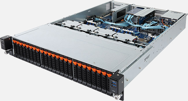 The Gigabyte R281-NO0 (6NR281NO0MR-00) can be configured with hot-swap drives, allowing you to remove and replace the drives whilst the system is running with no interruption.