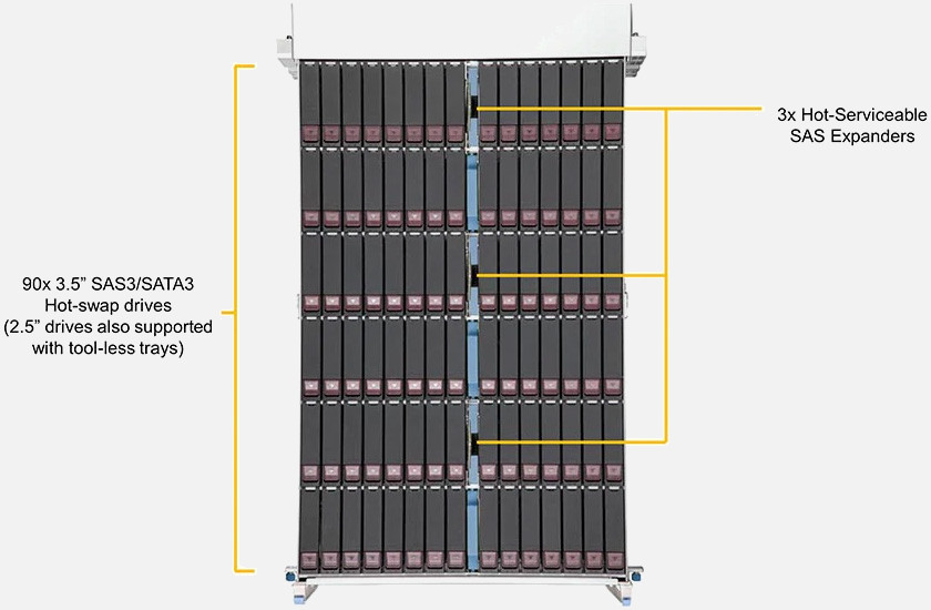 Large Capacity 4U, 90 Drive Bays, SAS / SATA Rackmount Storage Server