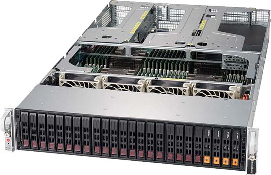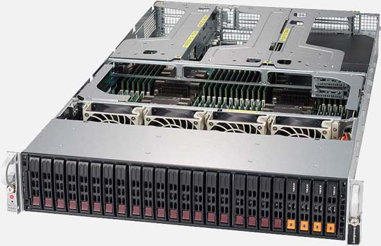 The Broadberry CyberServe 2049U-TR4 can be configured with 2.5” hot-swappable space-efficient drive bays and a mind-blowing 12TB of RAM.
