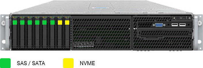 This system can be configured with NVMe drives, which are capable of significantly better performance than SATA and SAS.