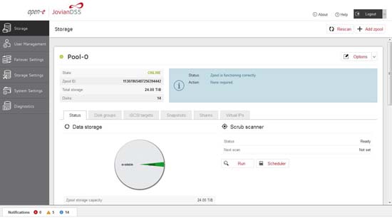 • Open-E JovianDSS WebGUI - Open-E is a specialist at creating intuitive and practical WebGUIs for ease-of-use and saving of time.