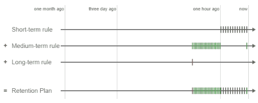 The Open-E JovianDSS On- and Off-site Data Protection retention-interval plan is made up of a sequence of retention periods to interval associations. It's based on ZFS snapshots and ZFS send-receive. There is near zero system load cost of snapshot creation and maintenance. The send-receive function allows for an immediate access to data changes between consecutive snapshots, it can also start replicating data differences each minute.