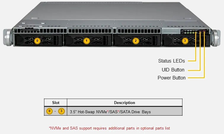 Optimised for web server, cloud computing and data centre use. AMD EPYC 9004 Series Processor. Dual Redundant power supply. 4x 3.5/2.5" hot-swap hybrid NVMe/SATA/SAS drive bays