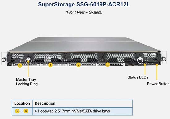 The Supermicro SuperServer 6019P-ACR12L | SSG-6019P-ACR12L features hot-swap hard drives, giving you more flexibility and allowing you to remove drives without having to shut down the system.