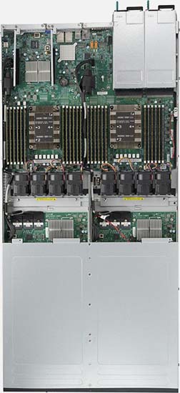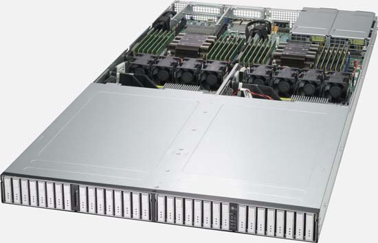 This system is capable of supporting up to 12 DIMMS per CPU. That’s a significant advancement on the previous limit, which was 9 DIMMS per CPU.