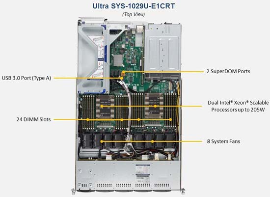 The Supermicro SuperServer 1029U-E1CR4 | SYS-1029U-E1CR4 supports the Intel Xeon Scalable Processors 2nd Generation family in a high-density 1U form-factor. These SuperServers are ideal for network infrastructure, front-end enterprise, and minimal-downtime cluster server systems.