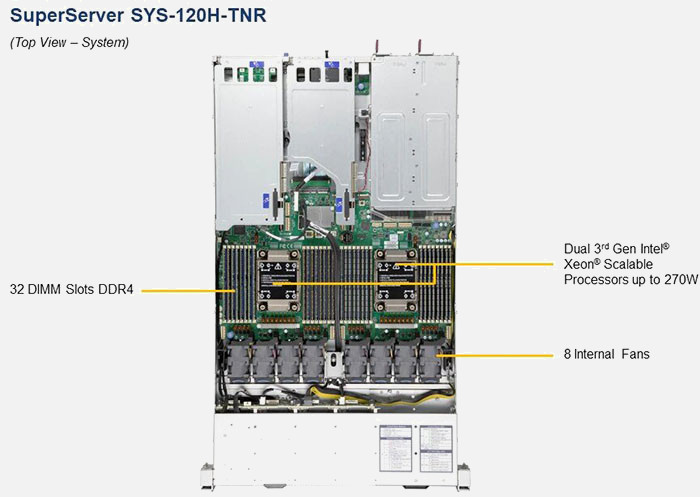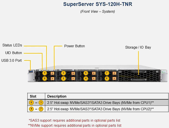 The Supermicro Hyper SuperServer SYS-120H-TNR | SYS-120H-TNR can be configured with 2.5" drives, a more space efficient and low noise option. These drives also offer energy savings and increased flexibility.