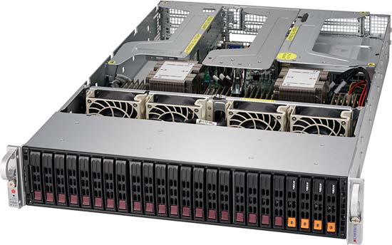 Optimised for Virtualisation, Hyperconverged Storage, Cloud Computing. 4x 1GbE LAN ports via Intel i350, 24x Hot-swap 2.5" drive bays. Redundant Power Option.