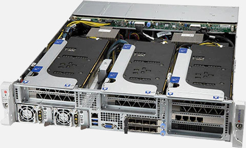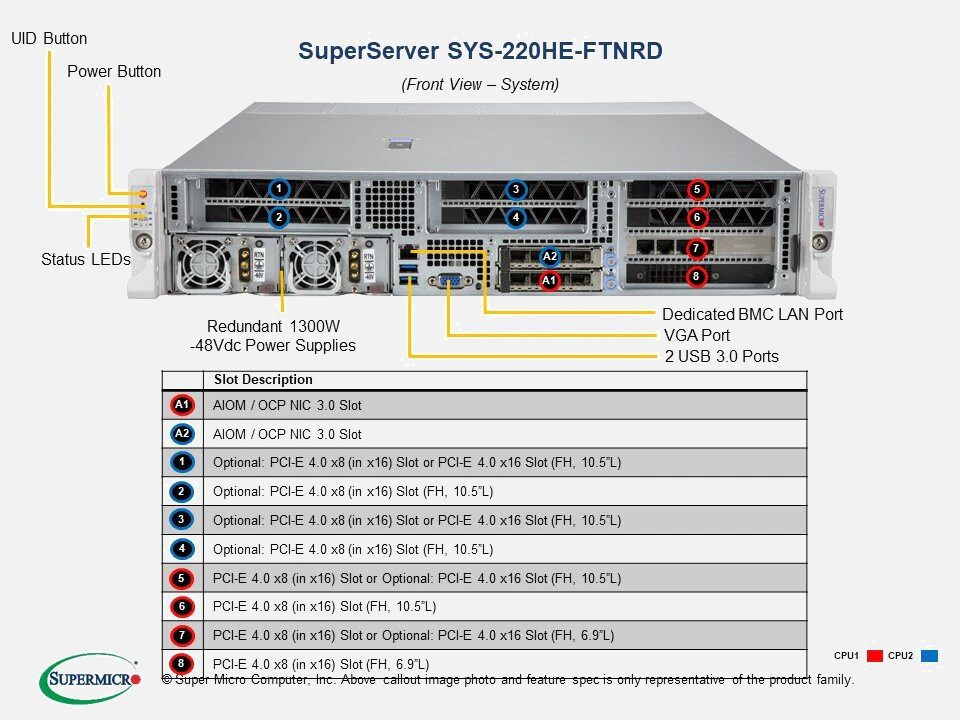 Ideal for 5G Core and Edge, Virtualisation and Cloud Computing. 4 PCI-E 4.0 x16 slots with GPU/Accelerator support. Redundant power supply.